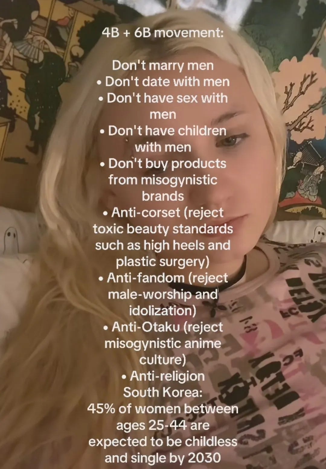 Before you “nobody is saying that” me, the 2024 election wasn’t the only time people called for a sex strike in the US, although it would be valid to question the legitimacy of these other calls to action. In 2017, Janelle Monáe suggested in an interview with Marie Claire that women go on a sex strike. In 2019, Alyssa Milano advocated for a sex strike to protest anti-abortion laws (a bit of a horseshoe abstinence-only thing, I guess). And this week on Substack, a piece by a bisexual woman who “decentered men” by simply dating women instead (it’s giving “still having sex”) called for a sex strike, assuming that straight women would stop having sex at all. (I’m not linking this piece, mostly because this woman doesn’t have a big following despite how often I’ve seen this article circulated, and it would be a #problematic power imbalance for me to inadvertently cause her to be brigaded.)
