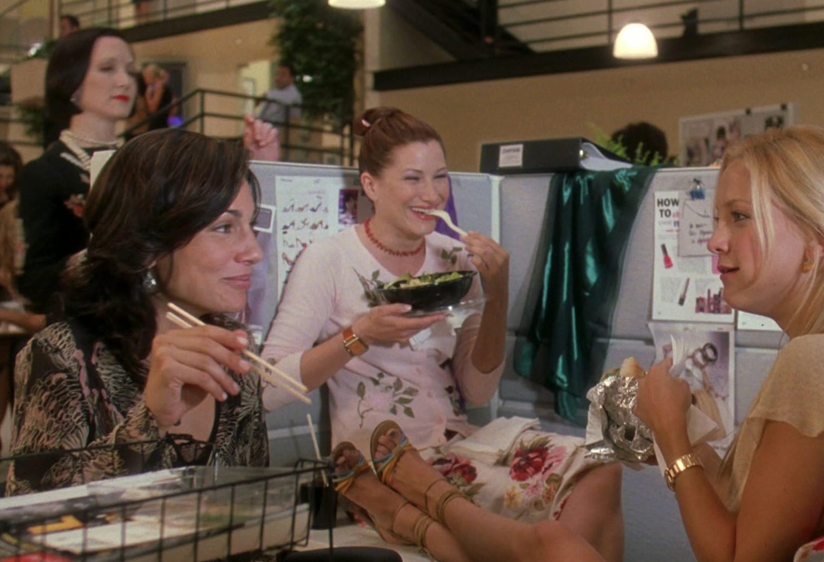 I watched this movie for the first time when it actually came out, and in hindsight I probably envisioned my future workplaces looking a bit like this—all fun and games, everyone gossiping, various ruses and gambits and bets being made all the time, coworkers all up in each other’s personal business (in a fun way) and everyone dressed in cute little pencil skirts and floral chiffon skirts. Well, then the real world happened and I just worked with a bunch of male engineers in hoodies and then got fired over and over again. Anyway!