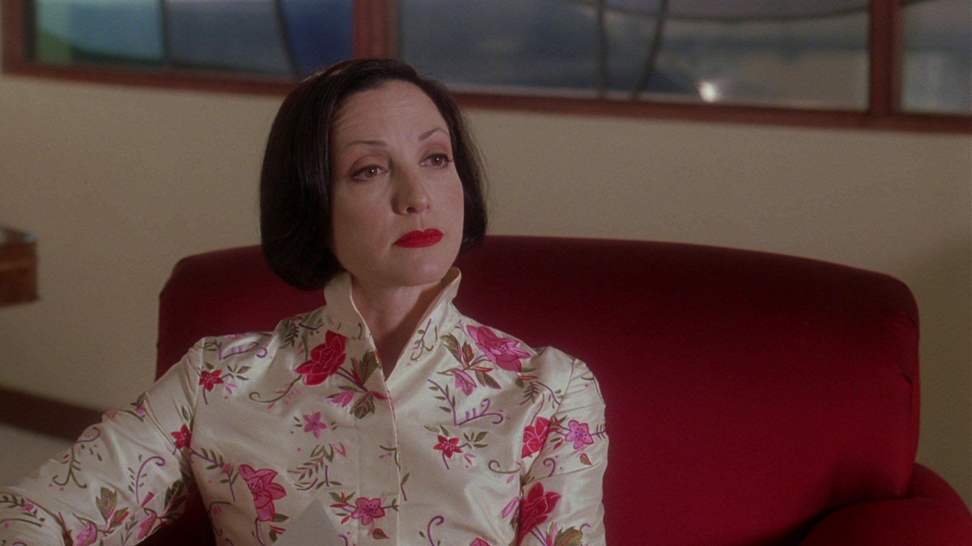 Side note: her boss’s name is Lana, but I just looked it up and her full name is “Lana Jong.” The actress who plays her is definitely not Asian, but sports pale powdered makeup, red lipstick, a short black bob, and various silk Y2K Chinese-inspired silk dresses. Not to be the Friend Who’s Too Woke, but…what exactly is going on?