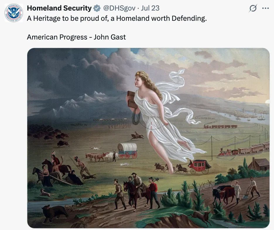 Now, this isn’t like Chuck Schumer appeared on C-Span and started complaining about Syndey Sweeney. These are just a bunch of people online, and we have no idea if they’re Democratic voters or “wrote in my roommate’s dog’s name because Kamala is a fascist cop” voters. Plus, the guy who apparently said this is also just the friend of an online person, who may or may not be real. But while these wokescold weirdos are apparently inflicting damage to the Democratic party, the actual Department of Homeland Security has an official Twitter account clearly being run by some kind of groyper (basically, a terminally online Nazi) who did some subtle “heil Hitler” messaging in a recent tweet. No biggie!