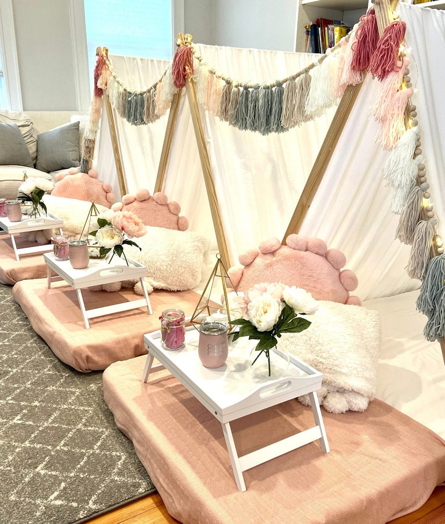 Take, for example, kids’ birthday parties. I actually wrote about why I like the tradition of giving kids gifts for their birthdays and why no-gift parties are kind of a buzzkill (this was arguably my most controversial article ever.) I think kids’ birthday parties should ideally include some kind of decoration, a cake, and presents. But if you’re very active on Instagram or other forms of social media, you will be led to believe that you should be required to spend thousands of dollars on your child’s birthday parties and that you need to be giving out bespoke gift bags that, dare I say, are boo-basket-coded. For example, assuming enough families even trust you to host a molestation-free sleepover, you might feel like you are expected to buy aesthetic glamping tents for the event, complete with personalized snack trays and Yeti cups: