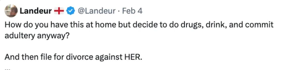This prompted multiple people to ask, incredulously, how such a thing could have happened. You’re telling me a man had a perfect tradwife at home and still cheated?? Quelle suprise!