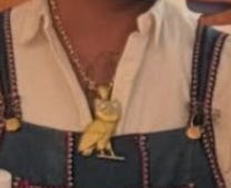 This was his outfit for Oktoberfest, which explains why he looks like the German kid who got sucked into the chocolate tube in Willy Wonka’s factory. But come on, he’s wearing Chanel embroidered cropped overalls and something I believed was a necktie bow but actually appears to be a….2012-era owl necklace???