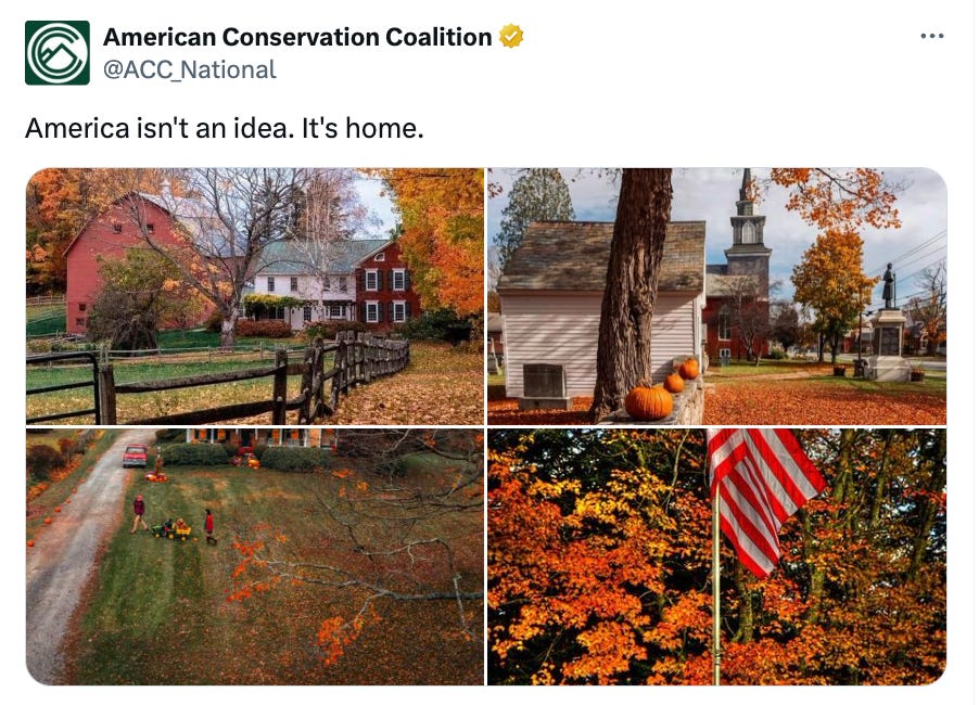 Very often, a pro-conservative account will post images of what they believe to be a “real” or “traditional” American landscape, and it’s almost always a blue district in New England. The latest: