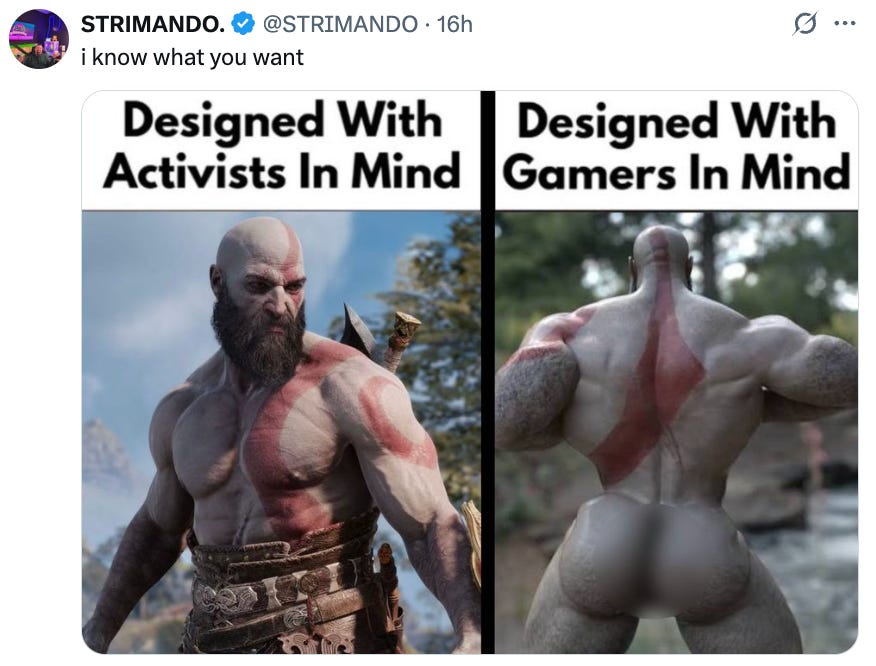 Another day, another gamer mad that Woke took away the giant bazungas in his video game: