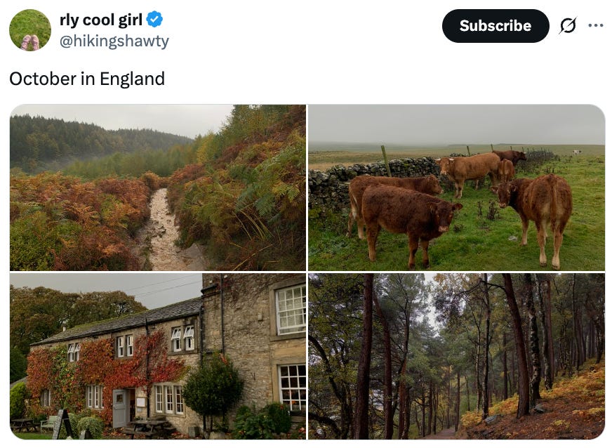 But while everyone was going berserk over the most beautiful parts of America, this lady was going viral for top-tier Englandposting, which really makes me want to go to England again: