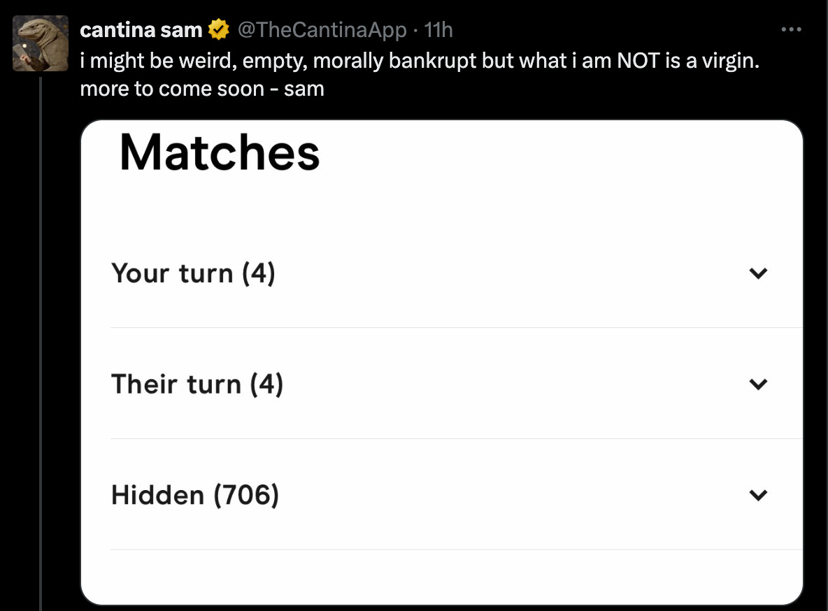 To be fair, Sam, how do we know the 706 hidden matches aren’t all chatbots?