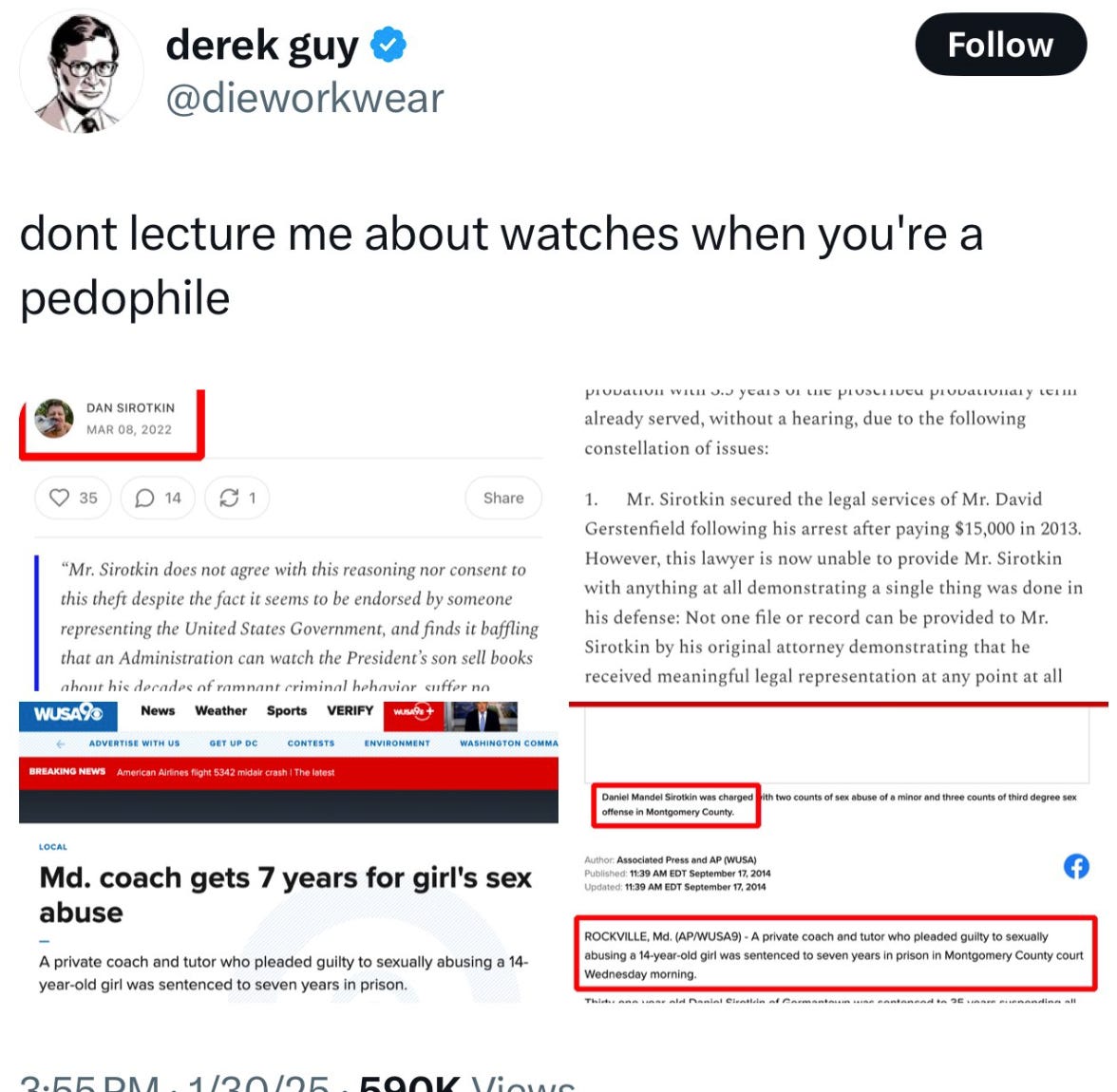 So yeah, Menswear Guy did some major hacker/sleuther work (ie: Googling the guy’s username and then Googling his name which was prominently featured on his Substack) to prove he was, in fact, a convicted pedophile. My take: