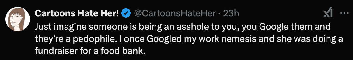 Welcome to Many Such Takes! For those unfamiliar, this is a free weekly segment (I also do lots of other stuff!) For Many Such Takes, I stay up to date with the latest and most chaotic Twitter (and now BlueSky) discourse so you don’t have to. If you see yourself featured here and you don’t like it, simply send me a Substack message and I will happily remove, no matter who you are or what you said.
