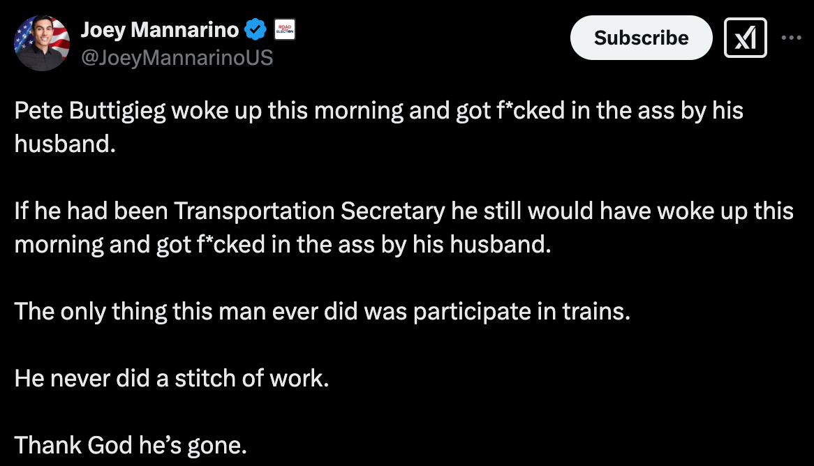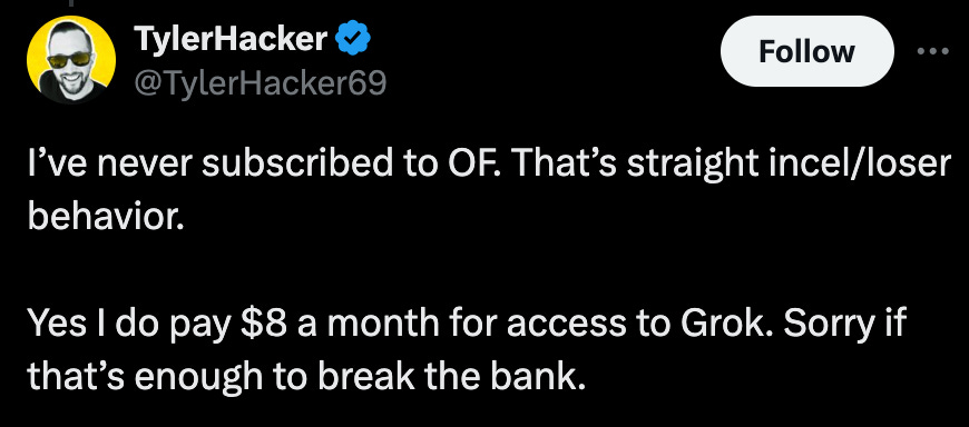 Someone responded to him and it’s not clear what they said, but they were probably accusing him of purchasing OnlyFans material and (presumably) making fun of him for purchasing a blue check on X. He said: