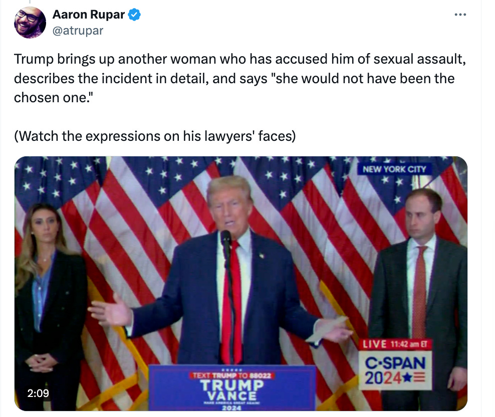 Anyway, it wouldn’t be a MAGA check-in without checking on on the center of MAGA, Donald Trump himself. I wonder how he’s doing!