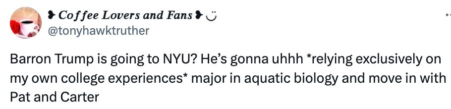 Barron Trump started school at NYU and some folk debated over whether such a college would turn him into a hippie/hipster/leftist: