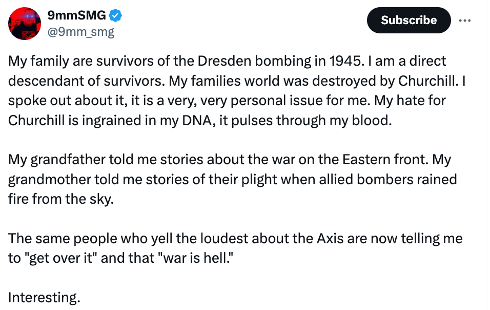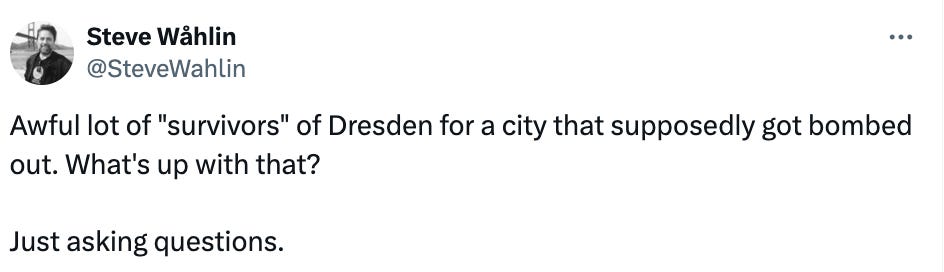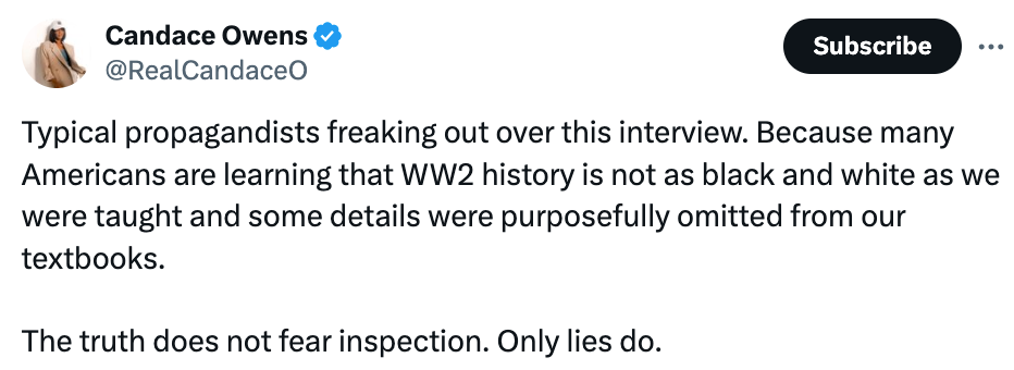 This week, WW2 was hot discourse! From Tucker Carlson’s Holocaust-skeptical guest to a descendant of Dresden bombing survivors, all week it was giving “just asking questions.”