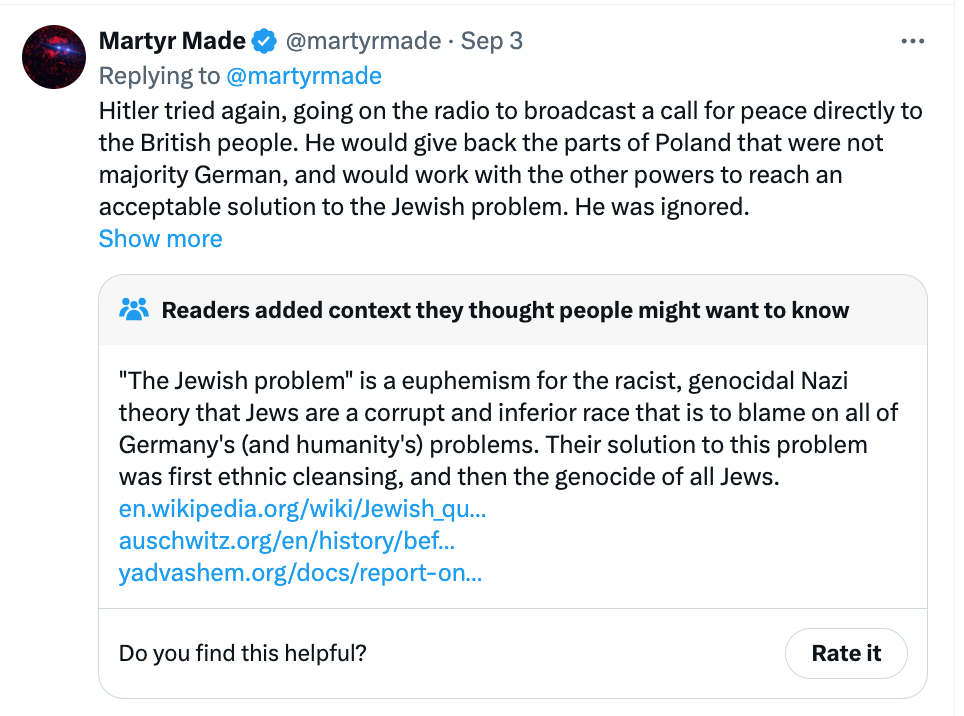This led to quite the community note, vis-a-vis the “Jewish problem:”