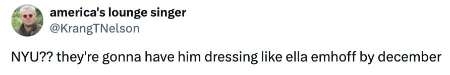 It is now my dream to start discourse that ultimately ends with a tweet from George Santos. I would also accept Ezra Miller.