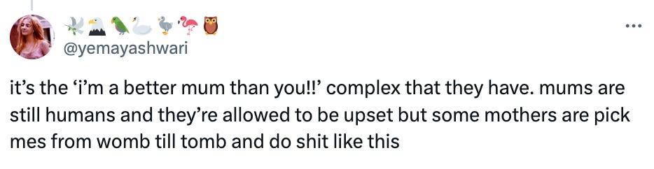 This user roughly coined the term “pick me ass mom” which I’m going to have to use at some point: