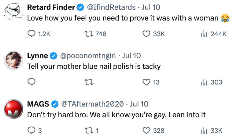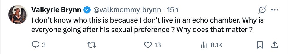 After pissing everyone off with the faceless blue nail polish lady, he reposted a photo of himself just going out for the night, which prompted lots of right wingers to accuse him of being gay.