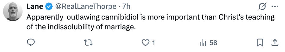 People ultimately decided that “recent discoveries” must have meant an affair, and some postulated it may have even involved men. But I also discovered a new Type of Guy—weed legalization enthusiast who also believes divorce is a sin: