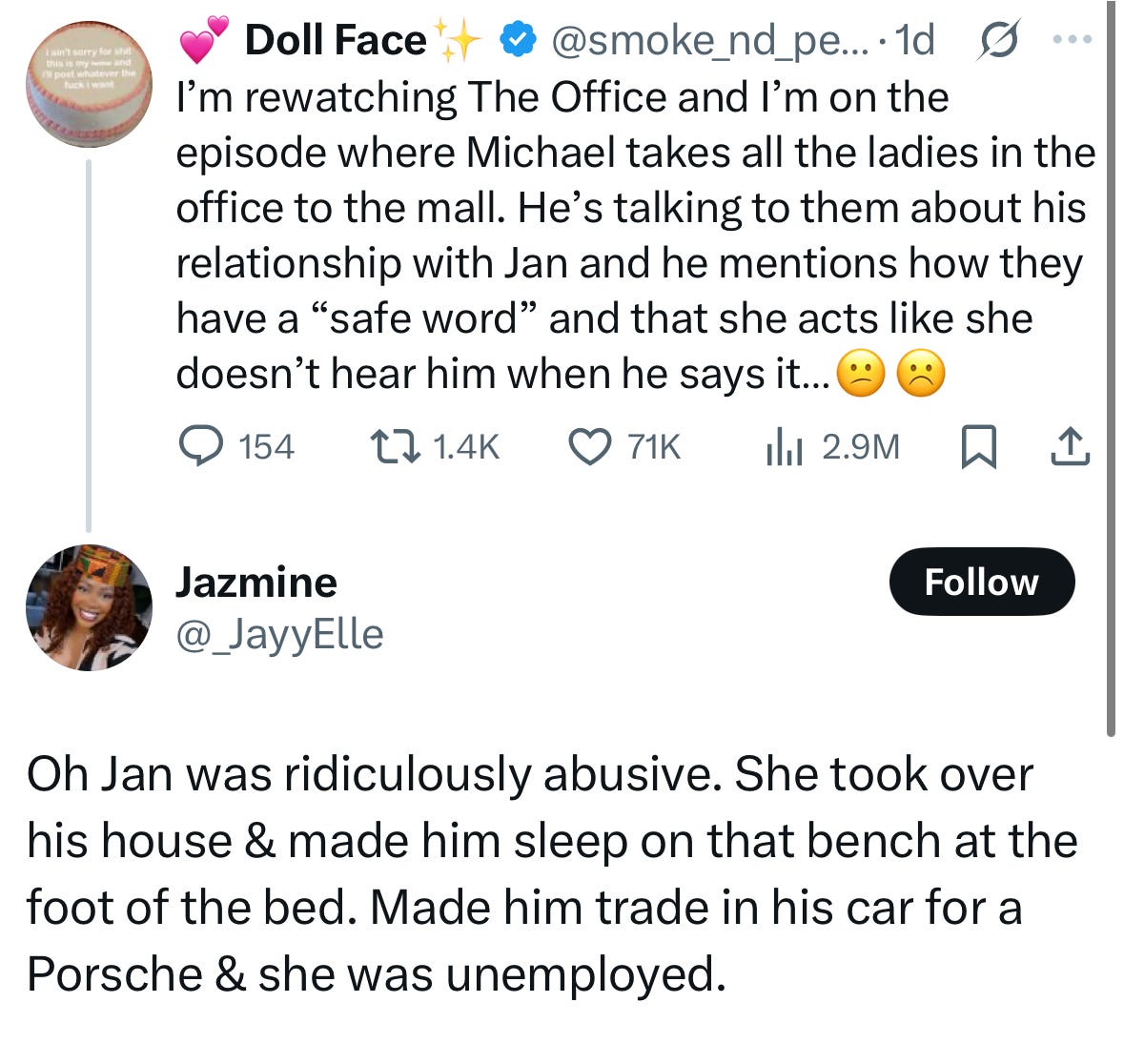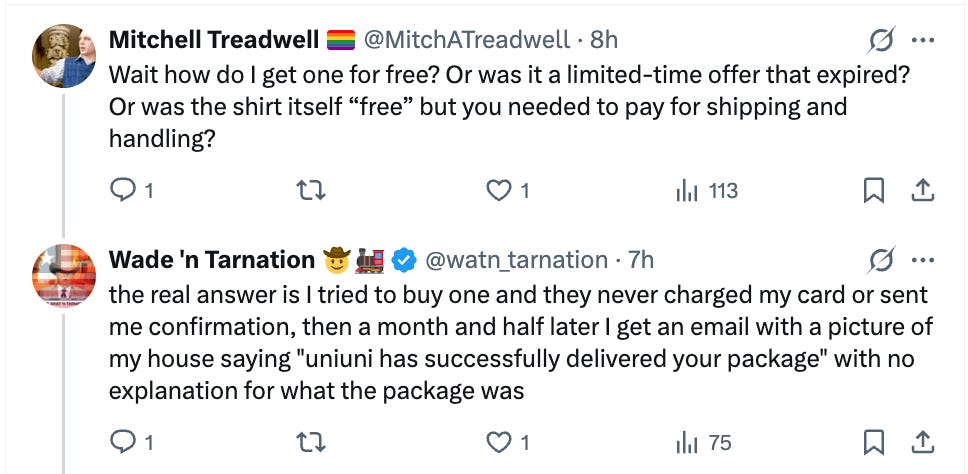 I feel like both of these people are joking, but I also can’t really tell. Joke’s on me!