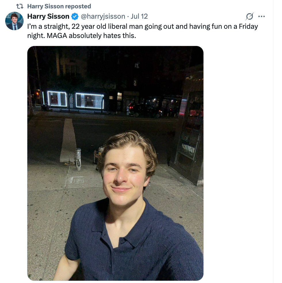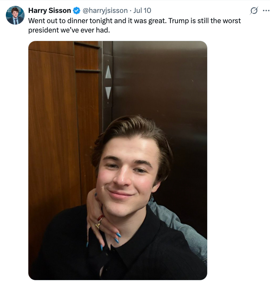 Harry Sisson, Gen Z liberal influencer, isn’t letting his psuedo sex scandal get him down. And in case you’re wondering which scandal, I’m not talking about when the guy who killed Osama Bin Laden fantasized about keeping Harry as his sex slave, I’m talking about when Harry was “exposed” for texting multiple girls at the same time. Still confused? Listen to my free Trump impression about it.