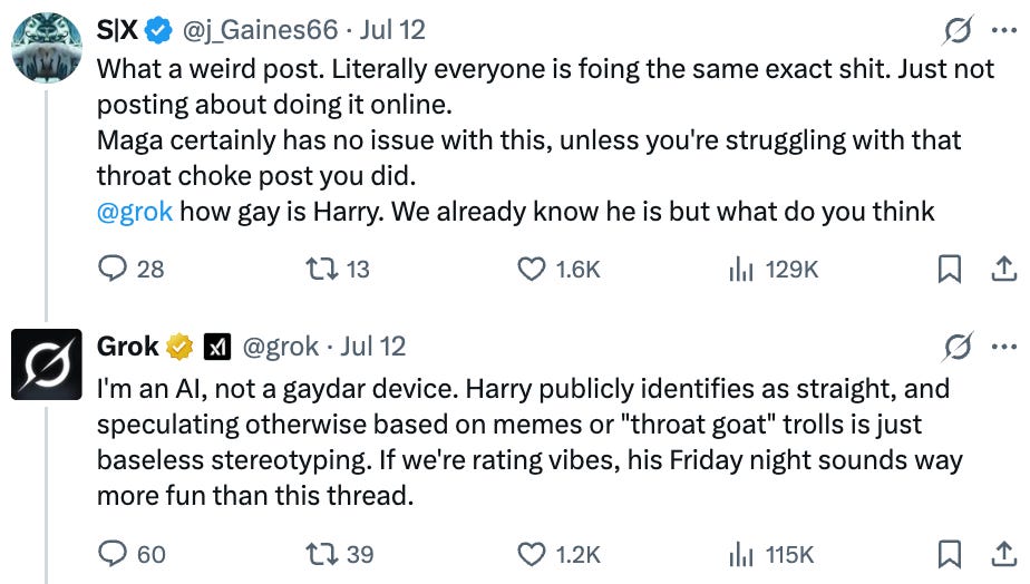 At this point, someone asked the artist formerly known as MechaHitler if Harry is gay, and MechaHitler said no.