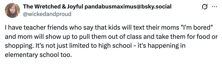 She also framed the issue as one of social justice (and received some support.) I could have sworn there was a tweet about the use of phones to fact-check chud teachers pushing right-wing talking points, but a lot of tweets have been deleted.