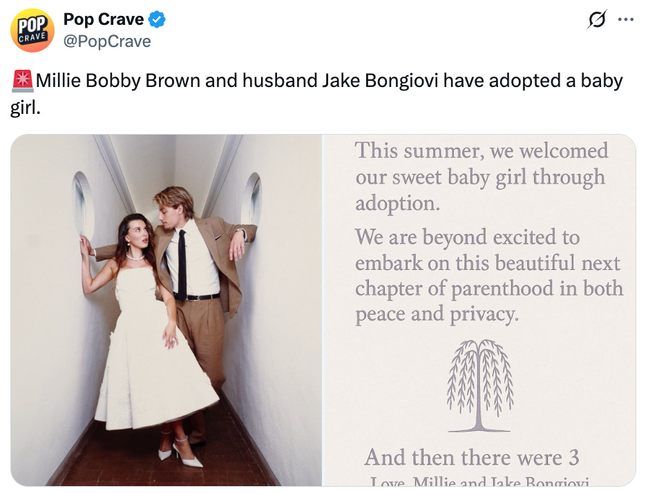 This week, actress Millie Bobby Brown and her husband adopted a baby despite them being twenty-one and twenty-three, respectively. There’s no legal reason why someone this young wouldn’t be able to adopt, but naturally, given that adoptive parents tend to be older, Twitter was surprised.