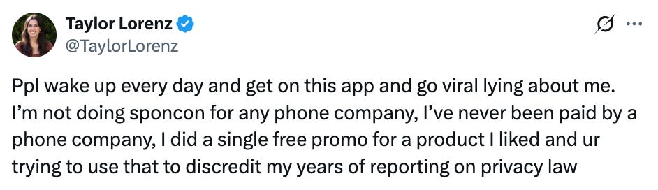 Taylor Lorenz hit back and insisted she didn’t do any paid promotion—she promoted the product for free: