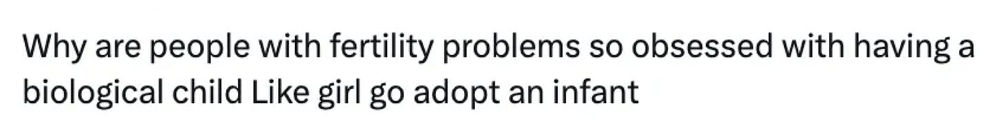 Generally though, adoption is something most people aren’t informed about (like, at all) so we had takes like “Thank goodness she adopted a child who needed a home instead of getting a surrogate!” not to mention this one:
