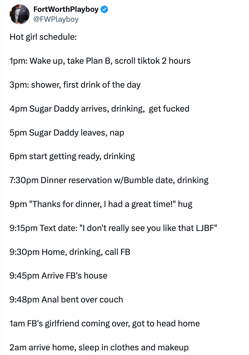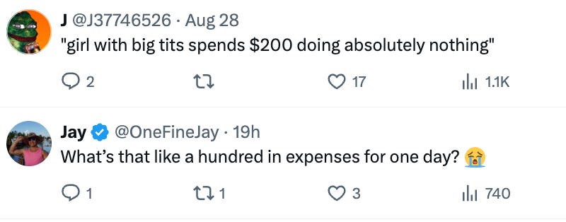 Every now and then, someone posts a pretty innocuous video of a young attractive woman (usually in NYC) who makes a banal video about everything she ate, drank and bought over the course of the day. Typically, these women are influencers, although it’s not always obvious to everyone watching the content, because people invariably get mad about her constant consumption and vapidity. Anyway, this week was no exception.