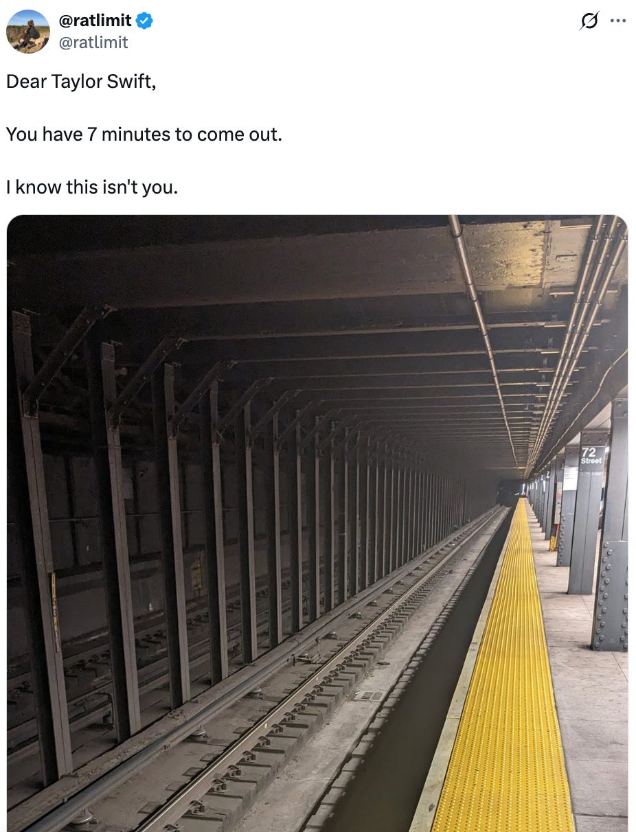 The best Gaylor bit, however, probably came from notorious Internet troll/comedian ratlimit. Ratlimit has gone viral in the past for fooling Twitter into believing absurd premises, so this was not surprising for anyone who was aware of Ratlimit. However, many people weren’t, so people believed it. First, she pretended to be on the verge of jumping into a subway track until Taylor Swift admitted to being a lesbian.