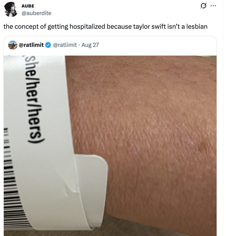 She then faked a hospitalization, presumably over psychological damage or a suicide attempt from Taylor Swift not being a lesbian: