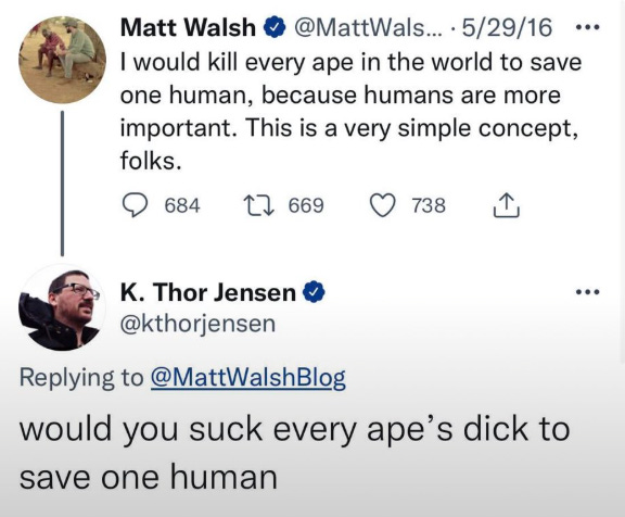 It all started to feel a bit like the classic Matt Walsh ape argument: