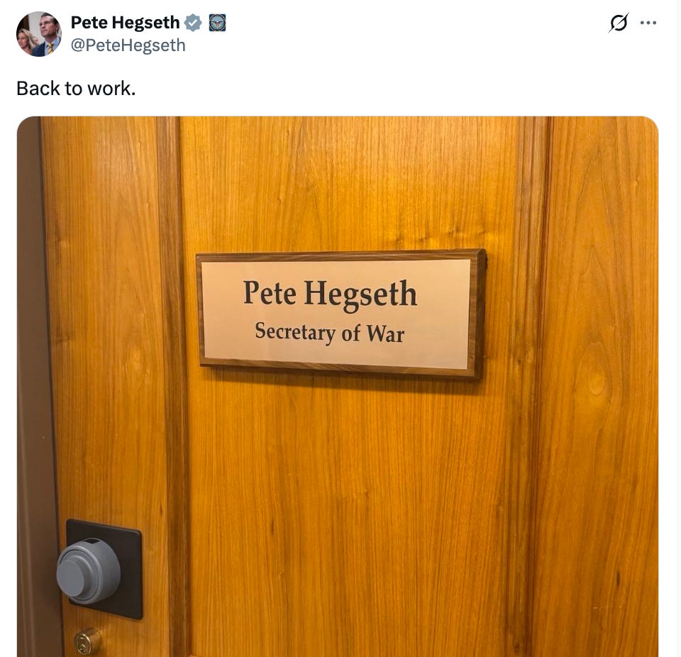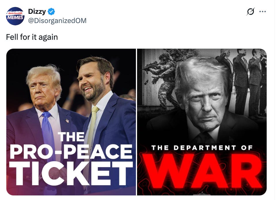 Wait—isn’t this confusing? Why do we have a “Department of War” when Trump/Vance was the pro-peace ticket?