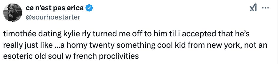 People dismayed over Timothee Chalamet not being an “old soul with French proclivities.”