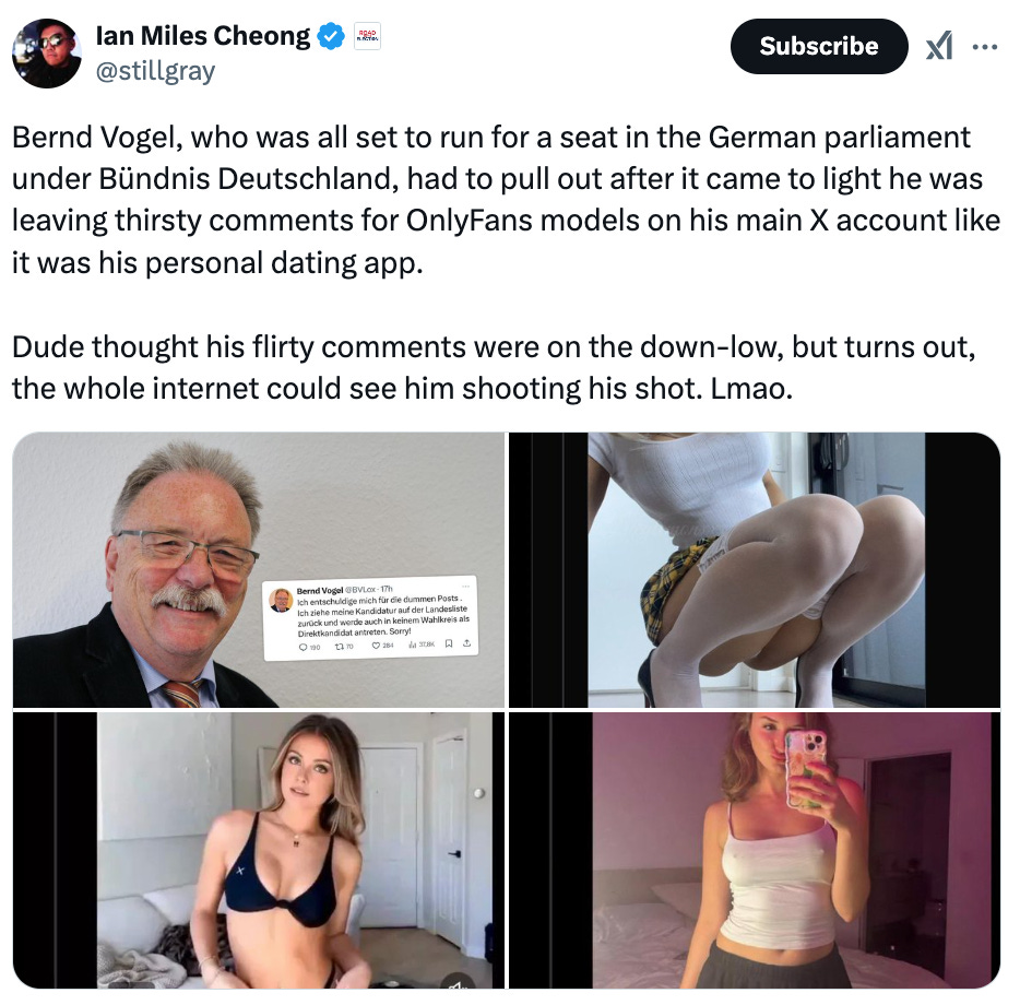Overall, the denizens of Twitter support Bernd and his horny self:
