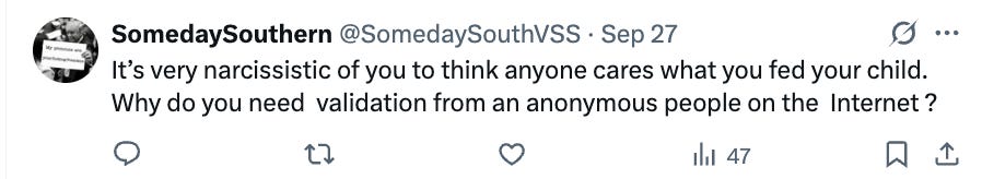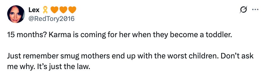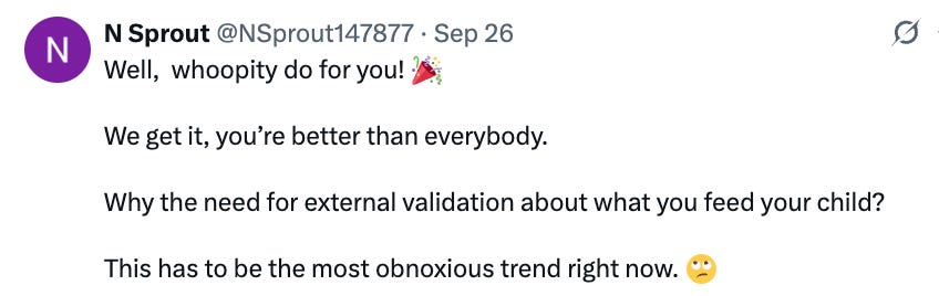 I noticed a bizarre dynamic where people couldn’t decide whether they were mad about the post because it was “smug” or, if they couldn’t prove it was smug, that it “didn’t need to be posted” or that it was posted “for validation.” Geez, why is ANYTHING posted?? Are people meant to post stuff on Twitter and hope nobody sees it or likes it? You’re on this validation-seeking app too!!