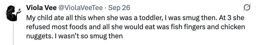 Feeding a toddler or preschooler can be really hard and demoralizing. Trust me, I’d know. I wrote all about how my child only eats five foods and how he’s sent two separate feeding therapists running for the hills. As a result, I understand how frustrating it can be to see other kids eating so much more (and more varied) foods than your kid. But this week, a mom posted some (fairly normal) toddler meals her 15-month-old ate, and people absolutely lost their gourds.