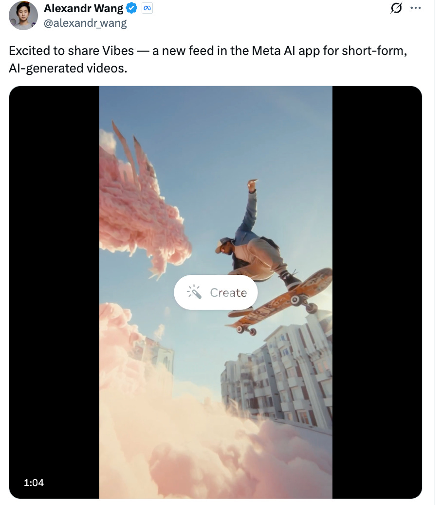 I know what you’re all thinking—we really need more short-form video content on our phones, ideally if it was all AI-generated. Well, Meta has you covered with their new feature: Vibes. Vibes is a feed of short-form AI videos, because FUCKING FINALLY, right?