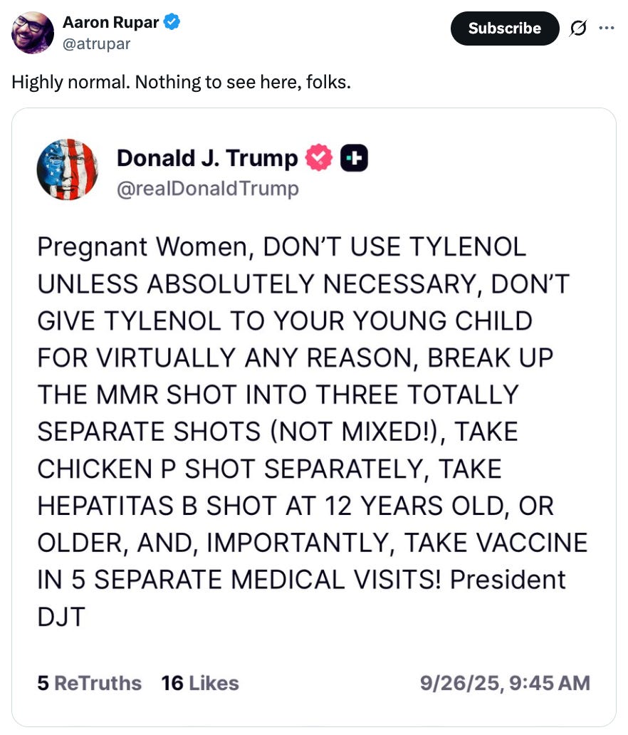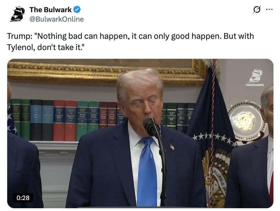 All of this has been very stressful and confusing for moms of autistic children, pregnant women, and autistic people, but at least we got the following instant classic Trumpism: