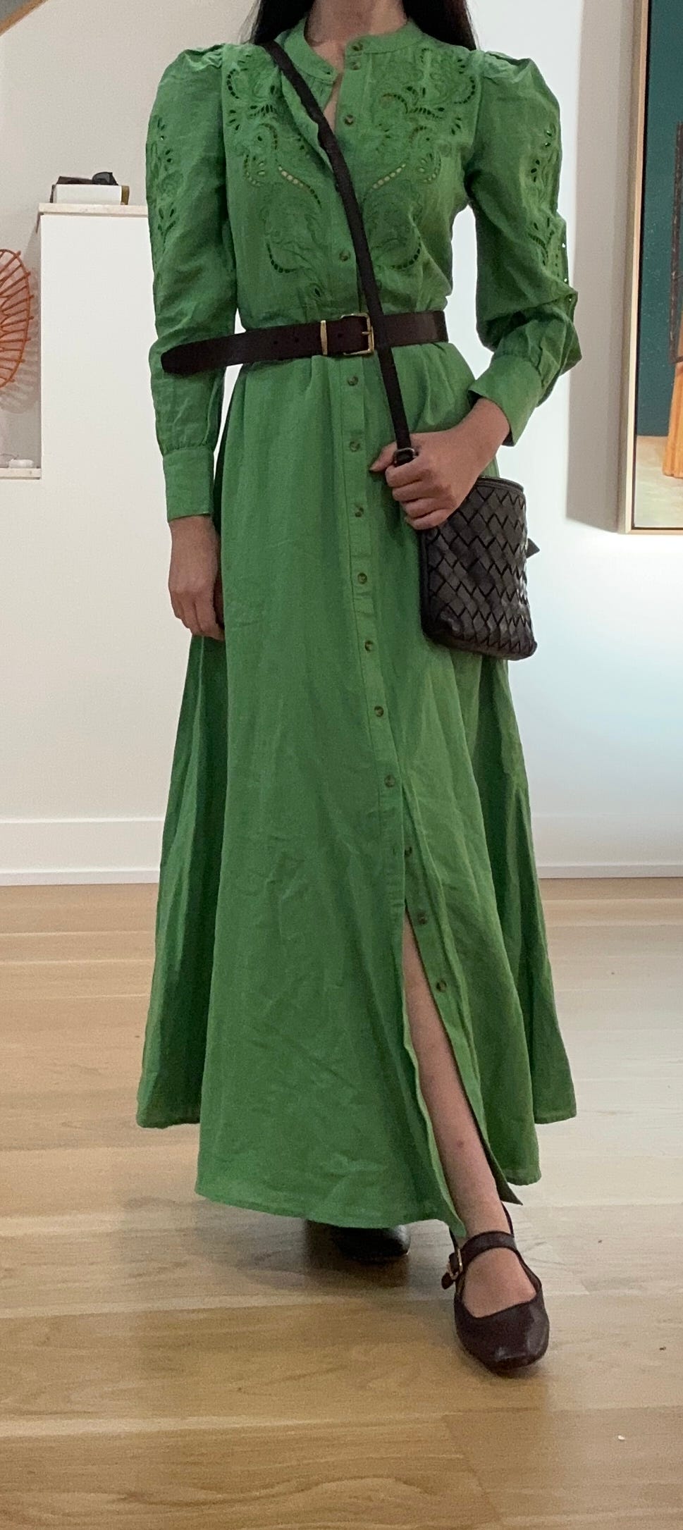 This outfit was one of my all-time favorites, I’d say. I wore the Sezane Selma dress with my trusty $50 Anthropologie brown woven crossbody and Sam Edelman Michaela flats. I know you might be zooming in on the bottom of the dress, tempted to give me crap for not “ironing” but look, we are at a time in my life when my options are wearing leggings all day or wearing something nice. Maybe when my kids are older I will have the time to iron everything I wear, but for now, just deal with it.