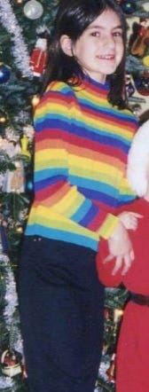 Ah, back in more innocent days before the beautiful, beautiful rainbow was stolen by WOKE GENDER IDEOLOGY. Anyway, I was in my Austin Powers era, and feeling groovy, baby so for Christmas I wore this rainbow sweater with some black velvet pants. I’m 99% sure it was from Limited Too. A cute look, but not really Christmasy, if I’m being honest. 7/10.