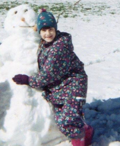 I served major Hanna Andersson realness this year in my ultra-puffy purple floral snowsuit. My mom even managed to match my hat and boots to the colors of the flowers, which was a nice sartorial move on her part. 8/10 for comfort and aesthetics. Also, every time you’re mean to me online, you’re being mean to THIS: