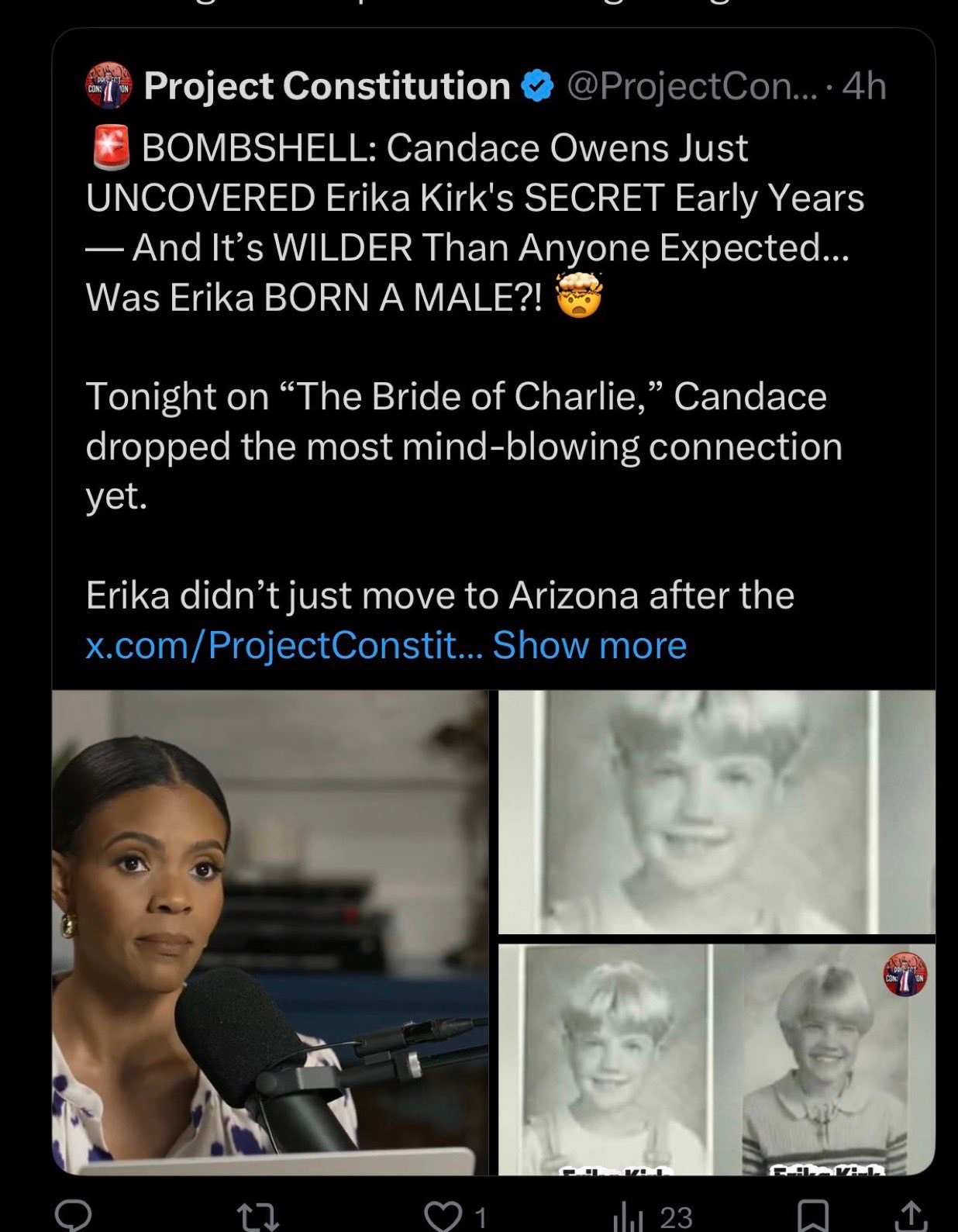 Also, Candace Owens is transvestigating Erika Kirk, if anyone even CARES.