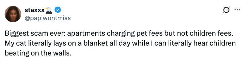 This person, a strong dog pronatalist, who believes we must disincentivize having children by charging more for them to live in an apartment building: