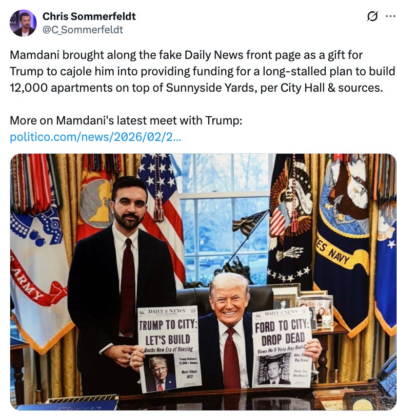 Mamdani showing up in the Oval Office with a fake newspaper is the stuff of which satire used to be made. Yet it worked. There's the cartoon world we live in right now.