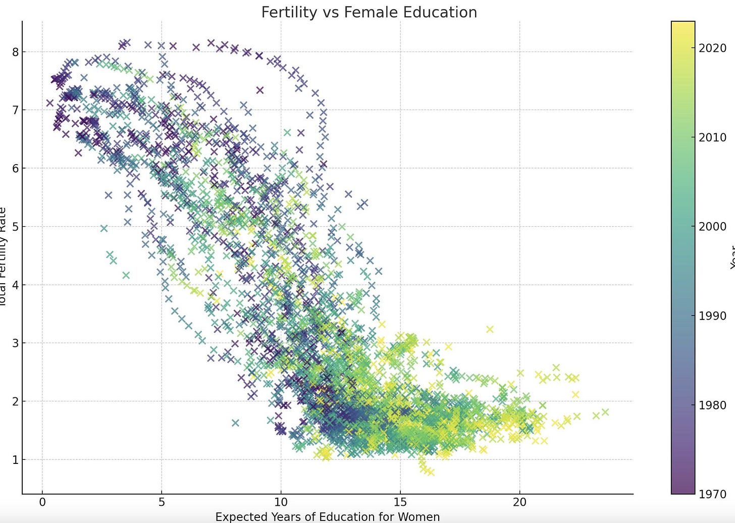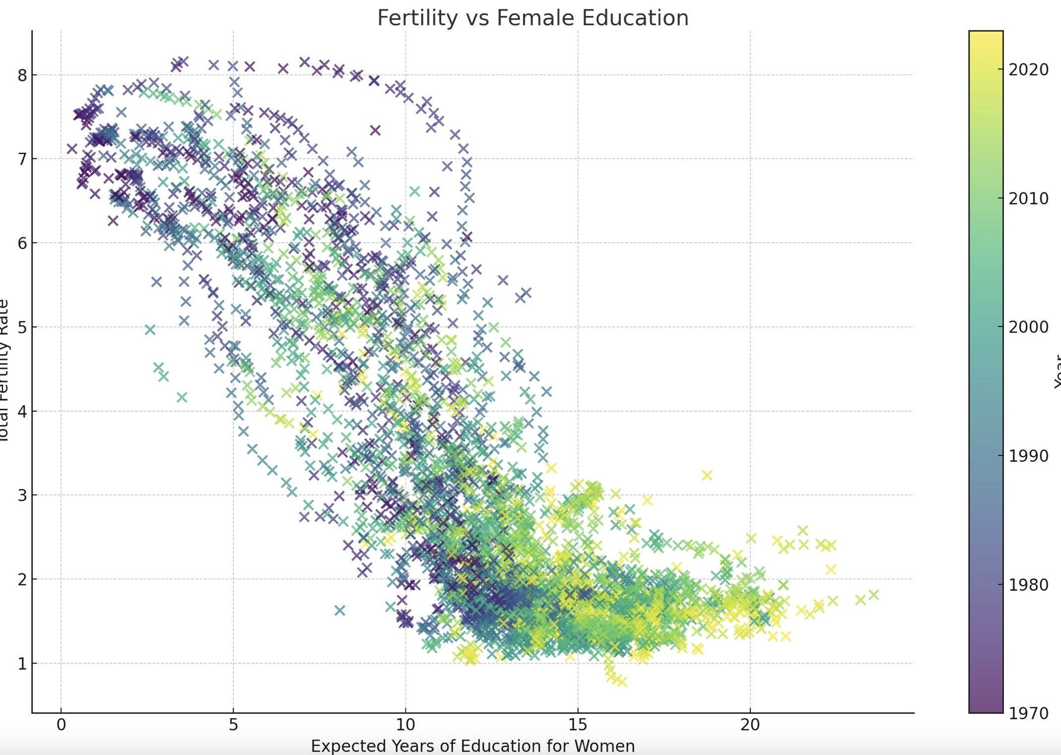 Recently, a graph went viral on Twitter for showing an apparent correlation between women’s educational attainment and a country’s fertility rate. Immediately, all the usual suspects who suspiciously always wanted to reduce women’s opportunities for completely different reasons had “validation” that this would, in fact, fix the birth rate: