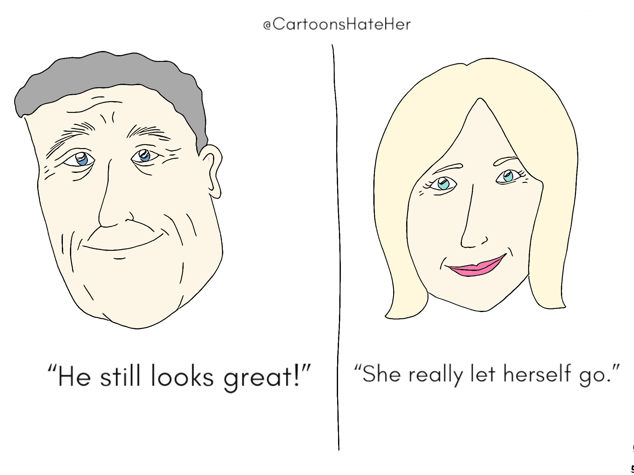 In part, this is because Hollywood sees men and women’s aging differently—not just that women are valued more for their youth (although they are) but we often see the same facial signs of aging on a woman and a man and conclude the woman is aging worse. In fact, we might come to this conclusion even when the man is older and objectively shows more signs of aging (Brad Pitt’s skin on a woman his age or even older would not be considered “aging well.”) And we are asked to believe, over and over again, that a male and female actor who are ten years apart are actually around the same age.