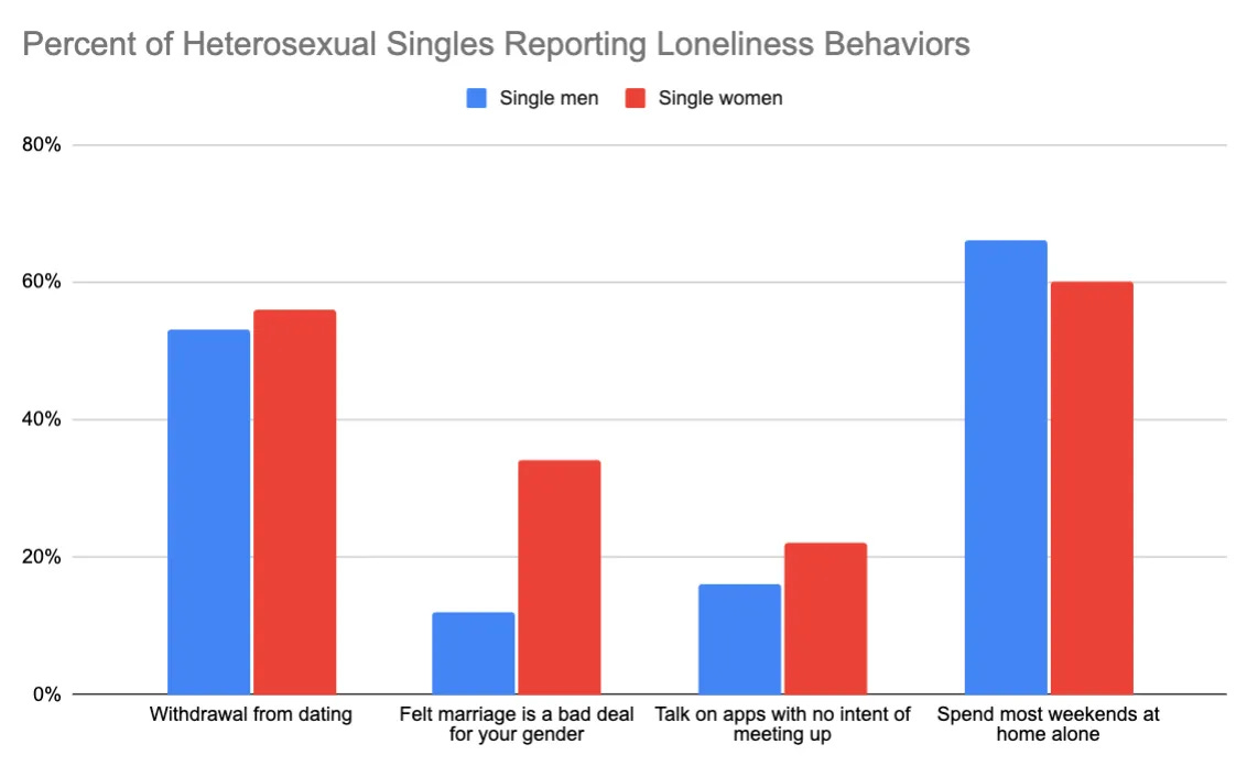 Also, if you agree with the premise that all incels are misogynists (and all misogynists are incels) then nobody can ever discuss the struggles of lonely young men without being accused of misogyny-by-proxy. And now, lonely young men are a huge chunk of young men! Of course, the loneliness epidemic affects everyone, not just men. I’ve written about that too. According to a new Kinsey Institute study, nearly half of Gen Z have never had sex and 80% report frequent feelings of loneliness. Another study done by Business Insider shows 37% of Gen Z never having sex. Even parents—people who are by definition around other people all day—are lonely and isolated.