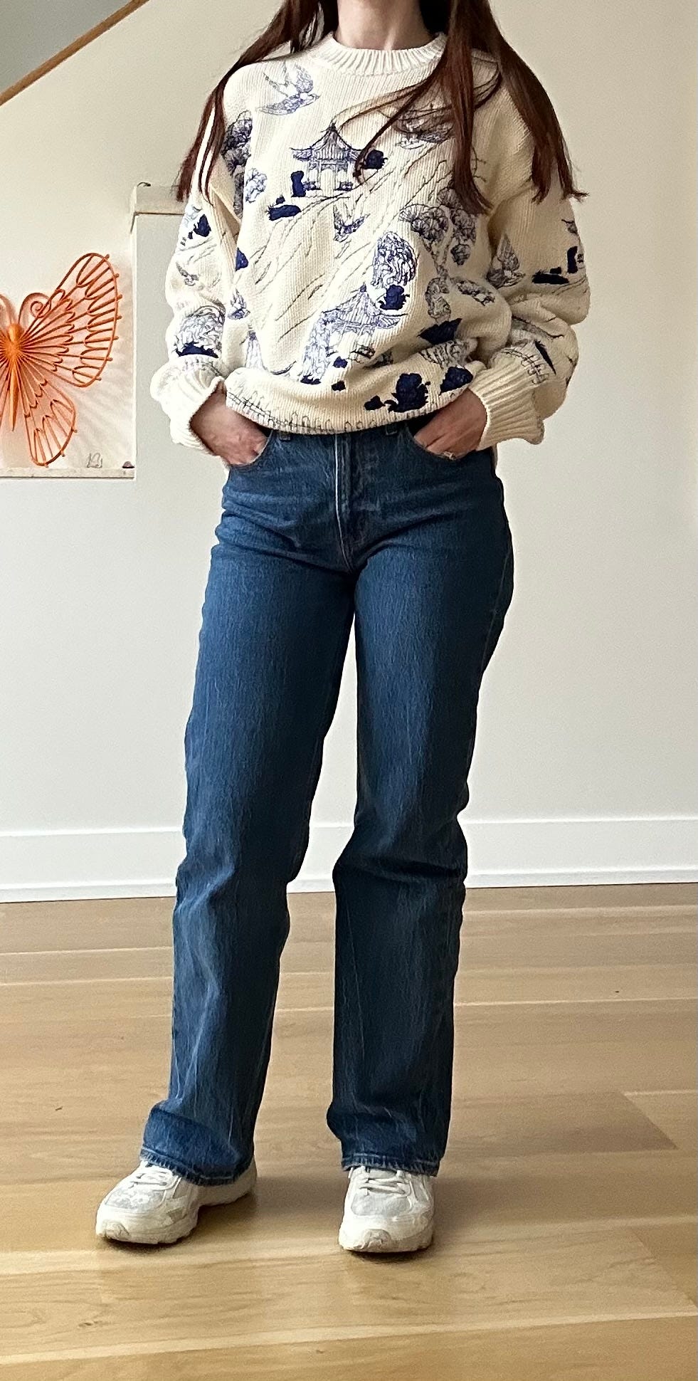 I almost never wear baggy-on-baggy, so this is the closest I’ll ever get. The sweater is from Yitai and is slowly becoming one of my favorites. Jeans are Abercrombie. Shoes are Asics.